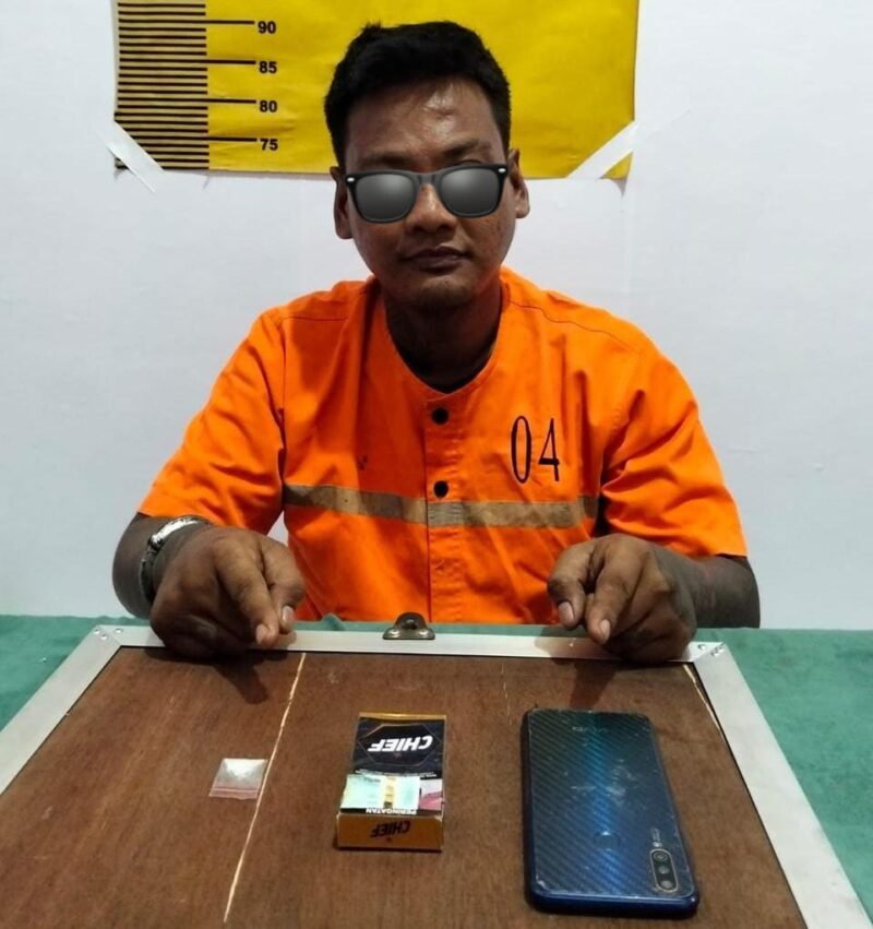 “Setelah dilakukan penyelidikan, tim opsnal berhasil mengamankan pelaku. Saat dilakukan penggeledahan, ditemukan barang bukti berupa 1 paket kecil sabu dengan berat kotor 0,36 gram, 1 unit handphone merek Vivo warna biru, serta 1 kotak rokok merek Chief,” jelas Kapolsek.